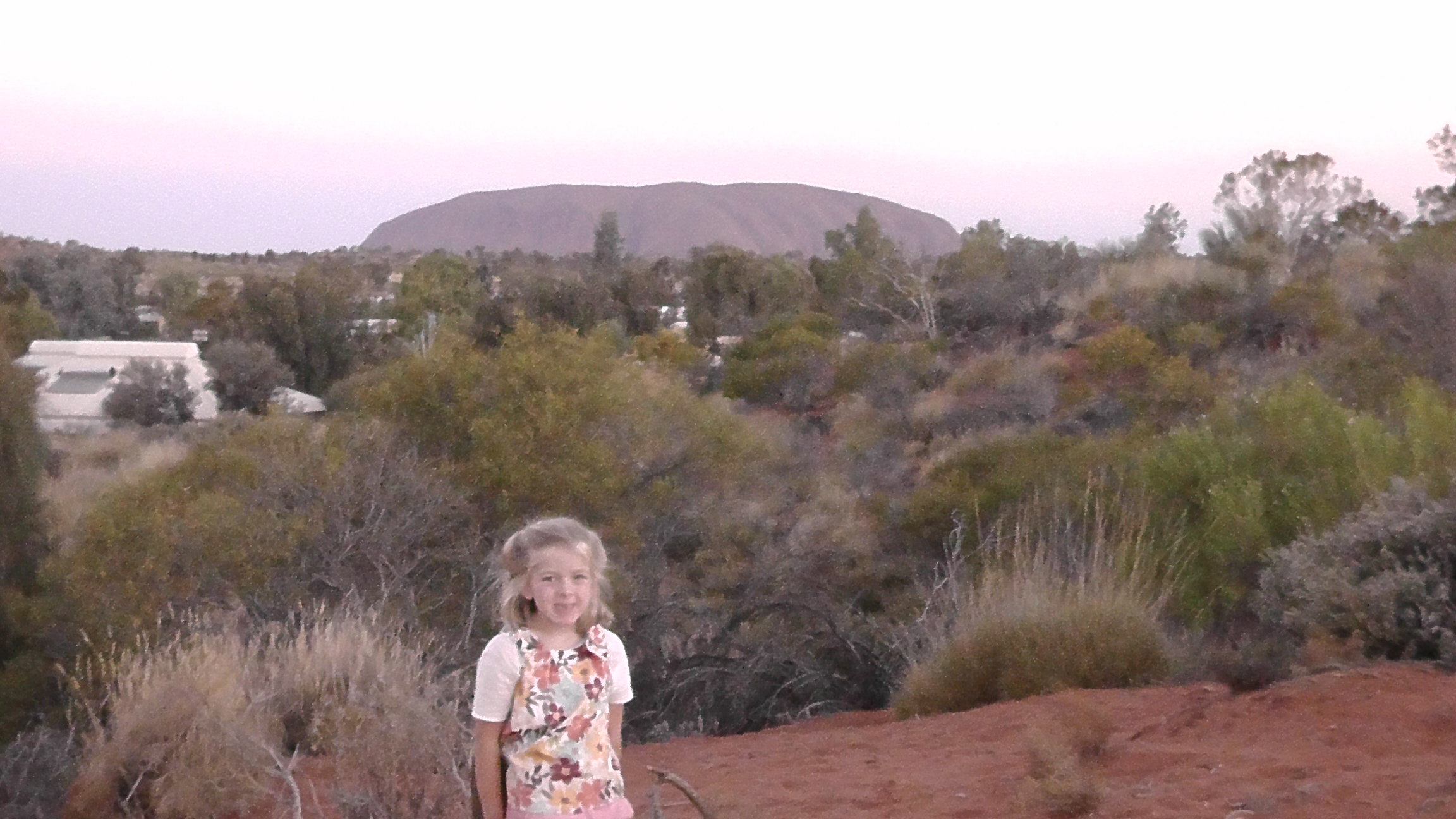 Bethany at the campground with Uluru in the background