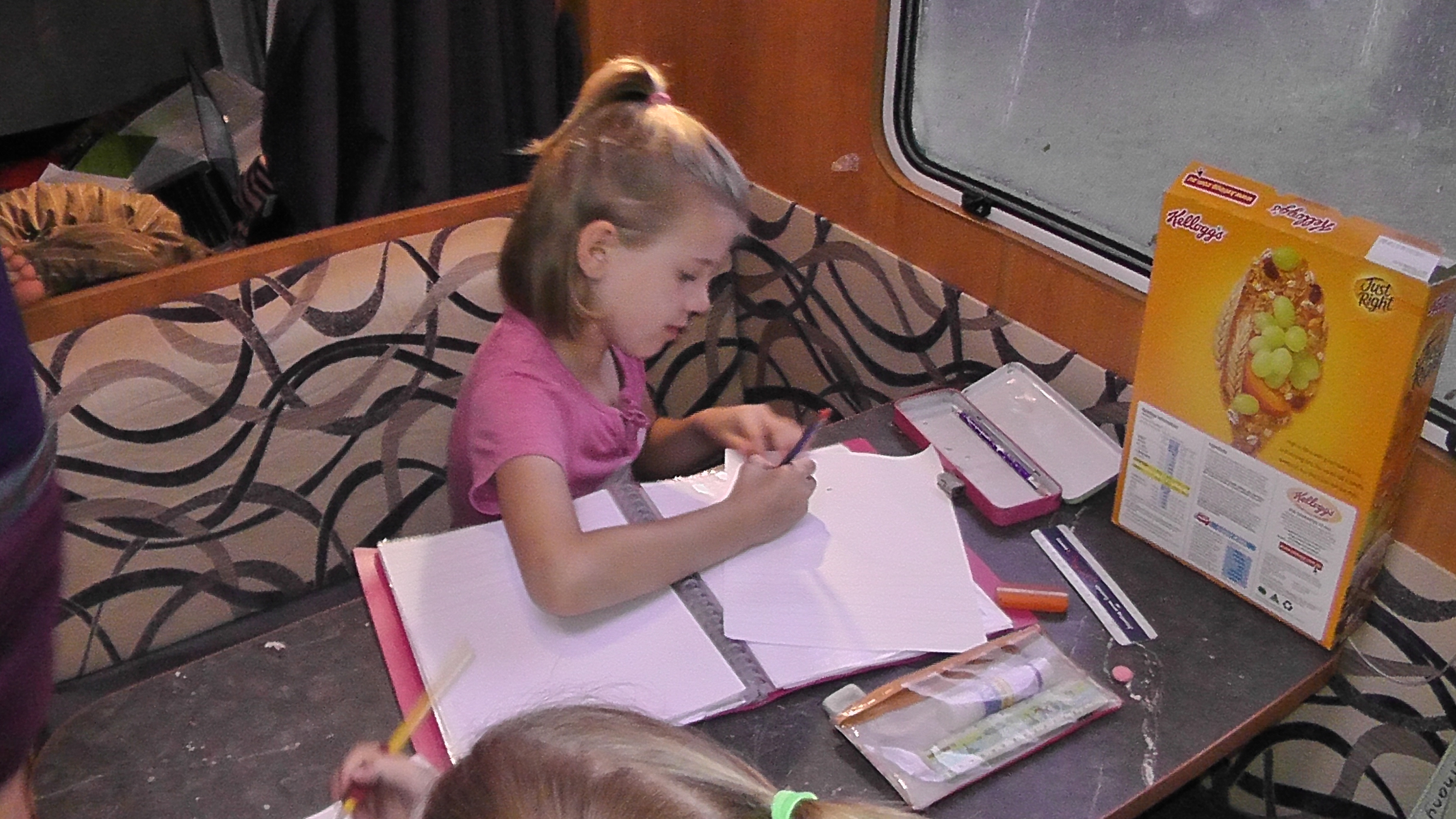 Hannah doing her journal in the caravan Published August 21, 2012 at 2304 × 1296 in Photos from our Round Oz Trip