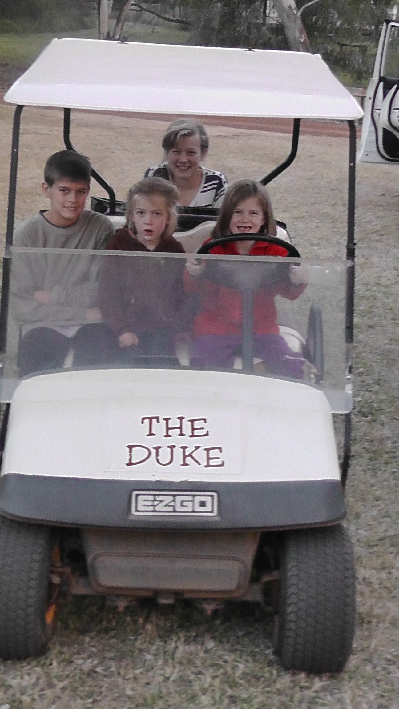 The kids on the buggy at Charleville Caravan Park